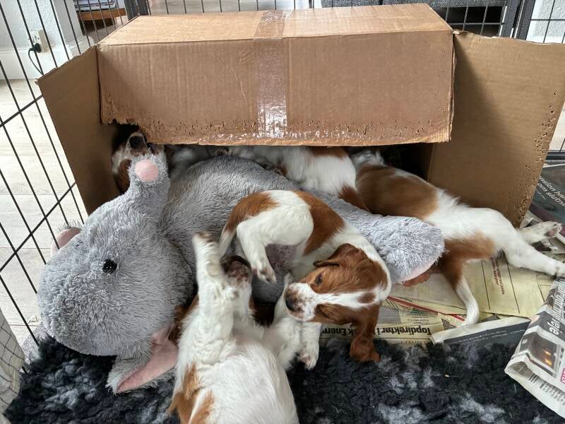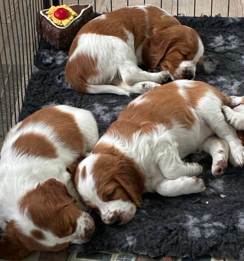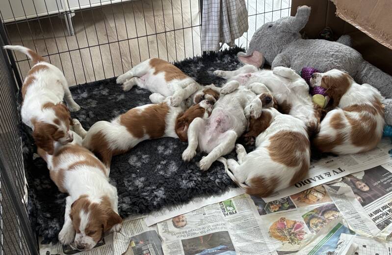 Hvalpene 1 uge gamle. Sover og spiser, sover og spiser...